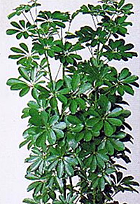 ウコギ科シェフレラ属カポック(シェフレラ アルボリコラ)の園芸品種で、葉柄が太く、 各小葉も肉厚で丸みがあり、株全体もがっちりとしている。